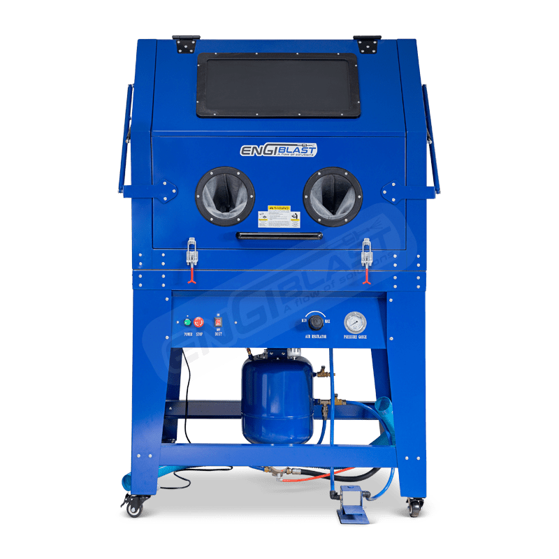 תא ניקוי חול בלחץ ENGIBLAST דגם EB-125/90-PR הינו דגם מקצועי ועוצמתי ביותר לשימוש תעשייתי. מכונת ניקוי חול בהתזה בלחץ ישיר מאפשרת עבודה רובוסטית, מהירה יותר, ובדרך מתאימה לכאלו הצריכים להסיר לכלוכים קשים ולהגיע לתפוקות עבודה גבוהות. תא ניקוי החול בהתזה מצויד באקדח בעל הדק הפעלה, אשר מגיע עם סט דיזות בקטרים שונים. ניתן לכוון לחץ עבודה בעזרת ווסת ובכך לשלוט על חוזק ההתזה. המכונה עומדת בתנאי תקן CE אירופאיים. מגיע מורכב ומוכן להפעלה.